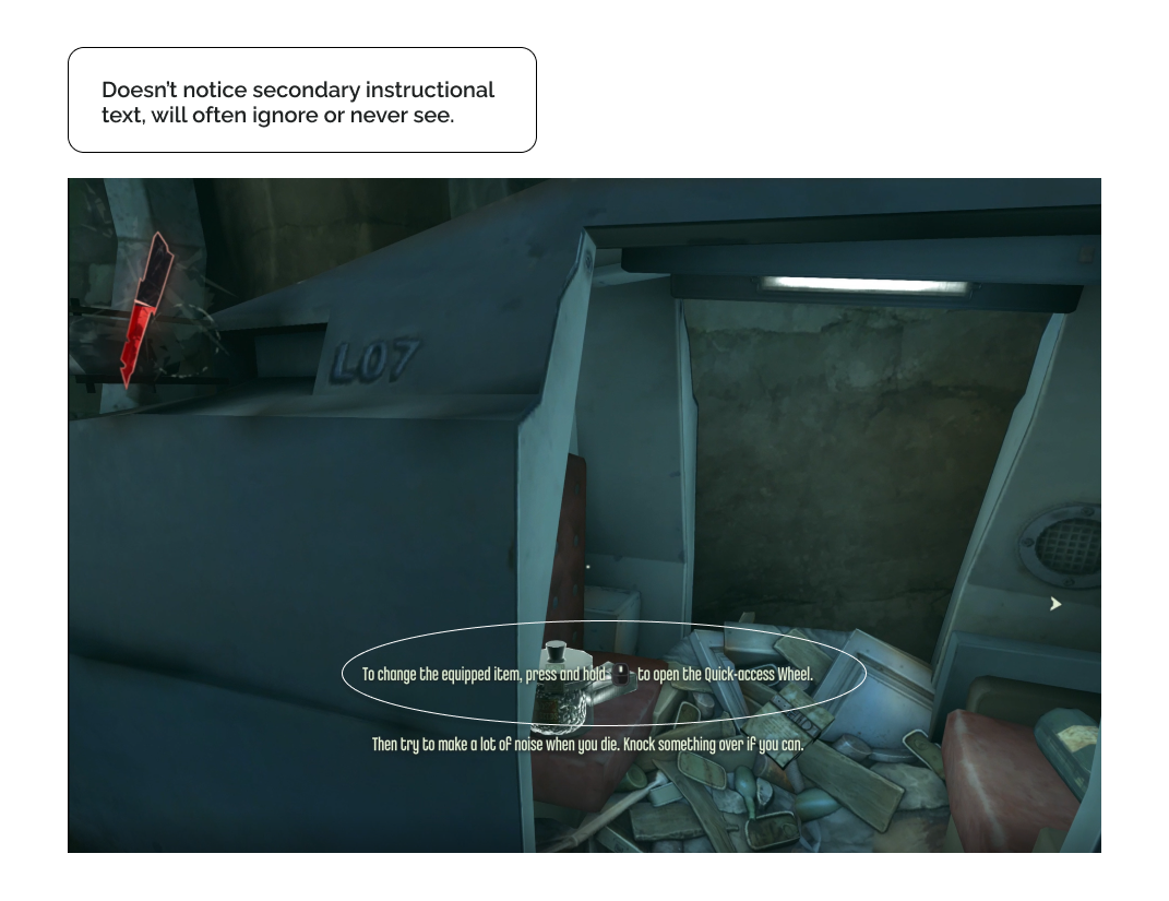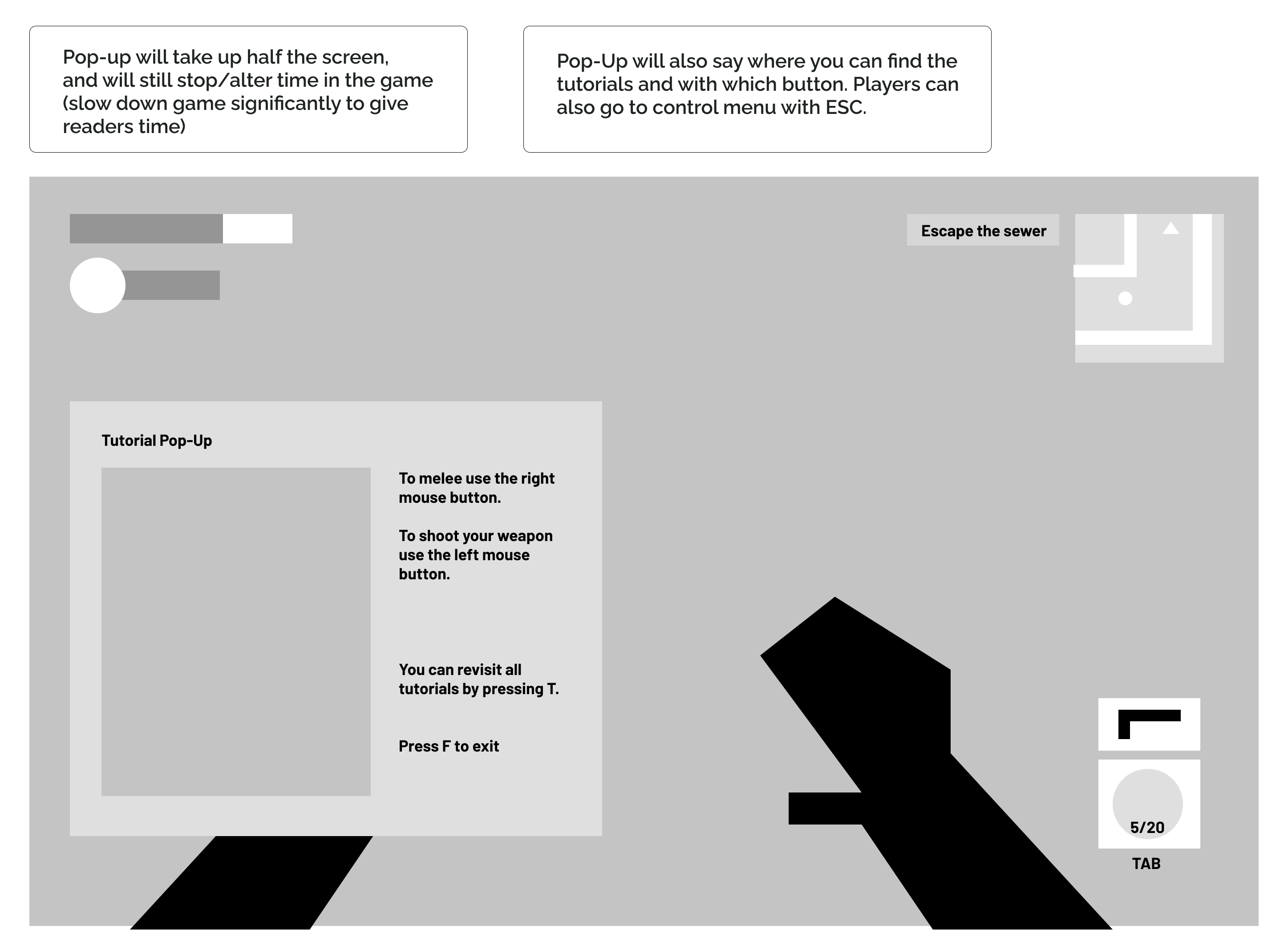 Many players did not understand how to switch between different weapons. Dishonored assumes players know to press different numbers for the corresponding weapon or scroll the mouse wheel. With the middle mouse button highlighted in the gun type asset, I intended for the ammunition wheel to appear when triggered by that action. Within the abilities wheel, descriptions were created for each power the player has selected to understand how it would effect their gameplay.
